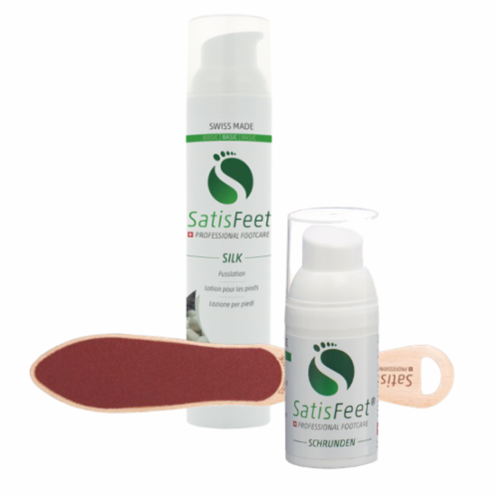 SatisFeet Silk vil mykgjøre, heler og hindre sprekkdannelser huden på føttene og iløpet av få uker får du friske sommerklare føtter. Bruk fotfilen for å få bort hard hud underveis og smør kremen på punkter morgen og kveld i minimum to uker. Bruk fotkremen for hele fotbladet for å holde huden silkemyk.